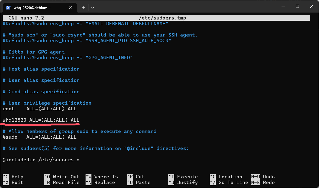 使用下面这条指令编辑sudoers文件