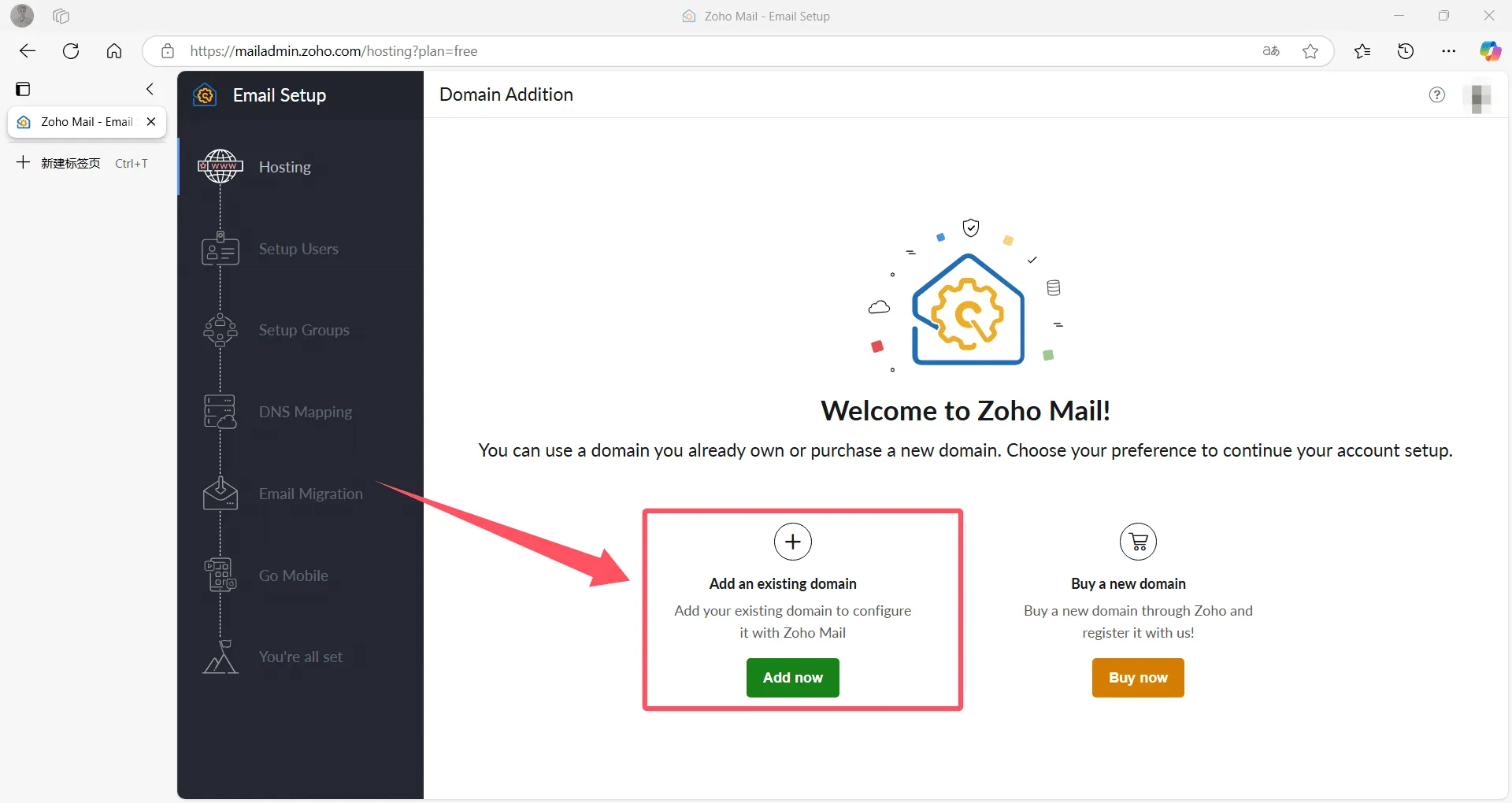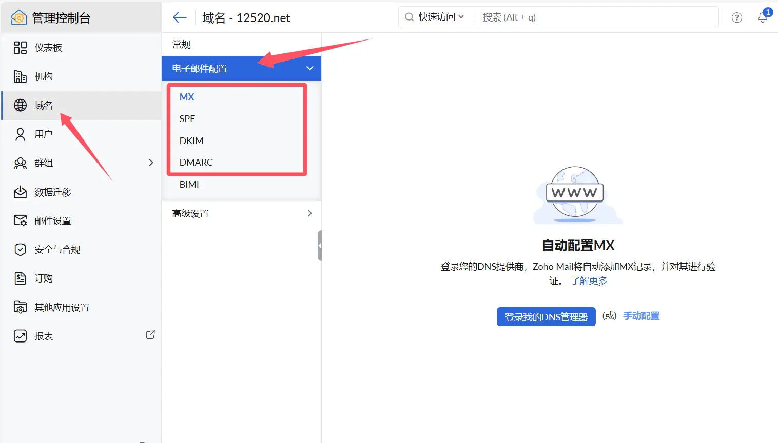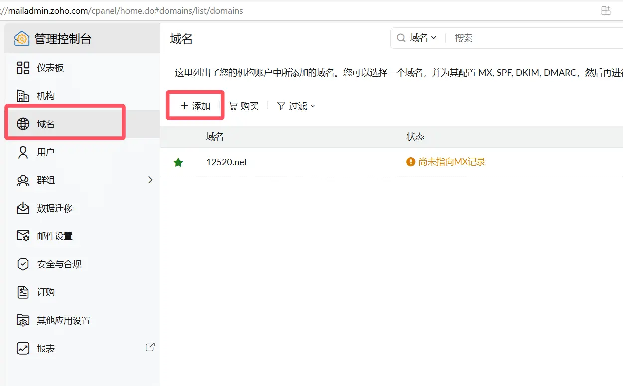 前往:https://mailadmin.zoho.com/