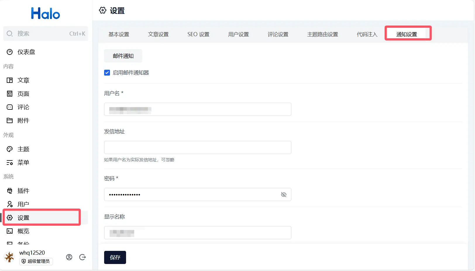 这里以halo邮件通知器为例