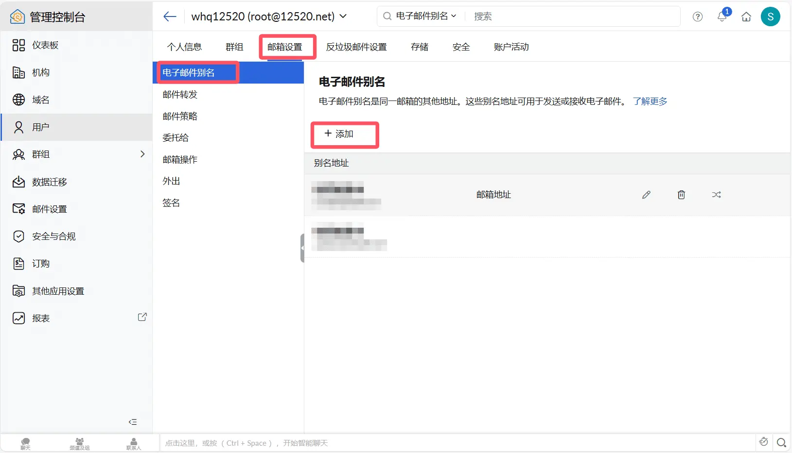 添加一个电子邮箱别名(作为发件地址)