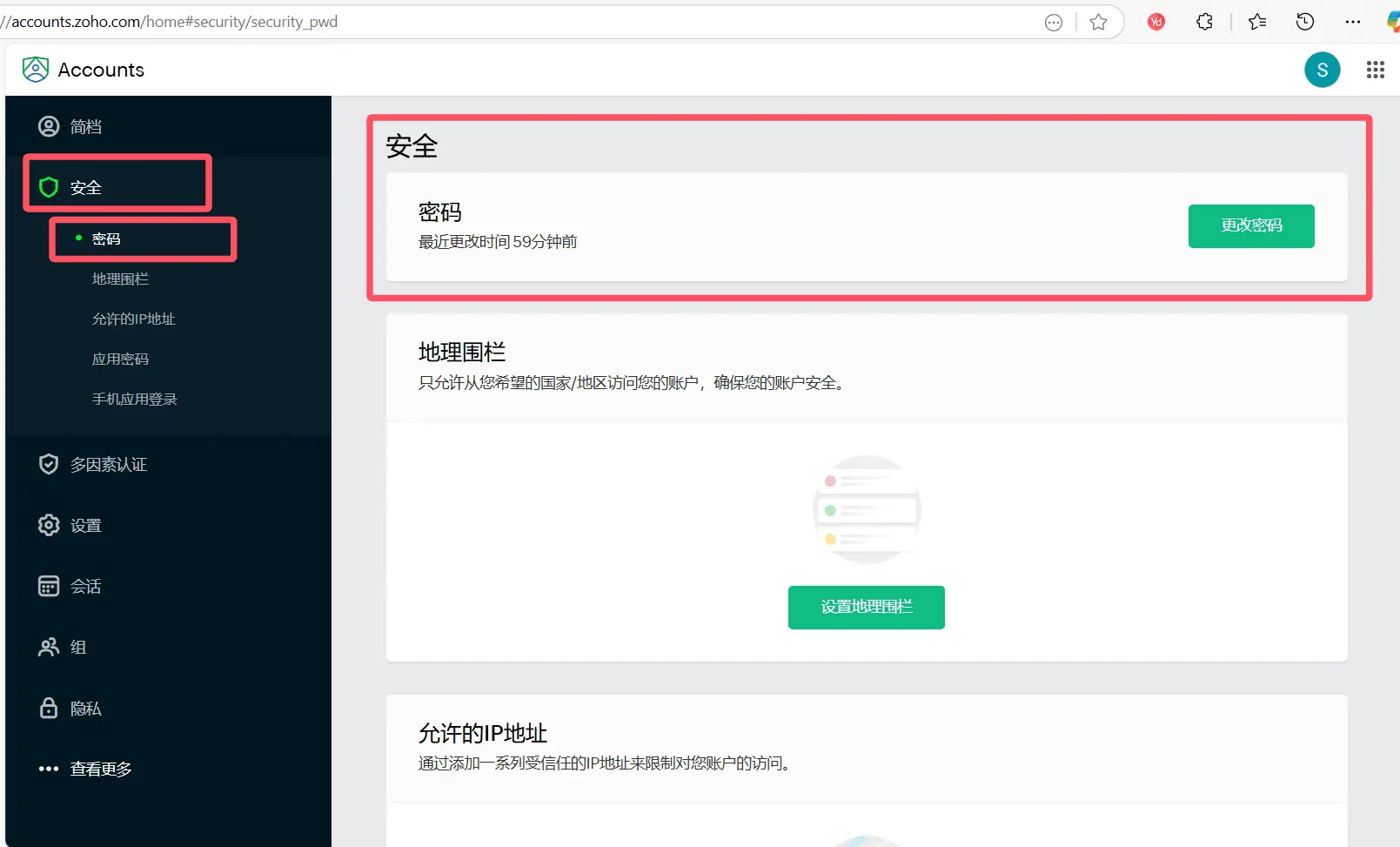 前往:https://accounts.zoho.com/home#security/security_pwd